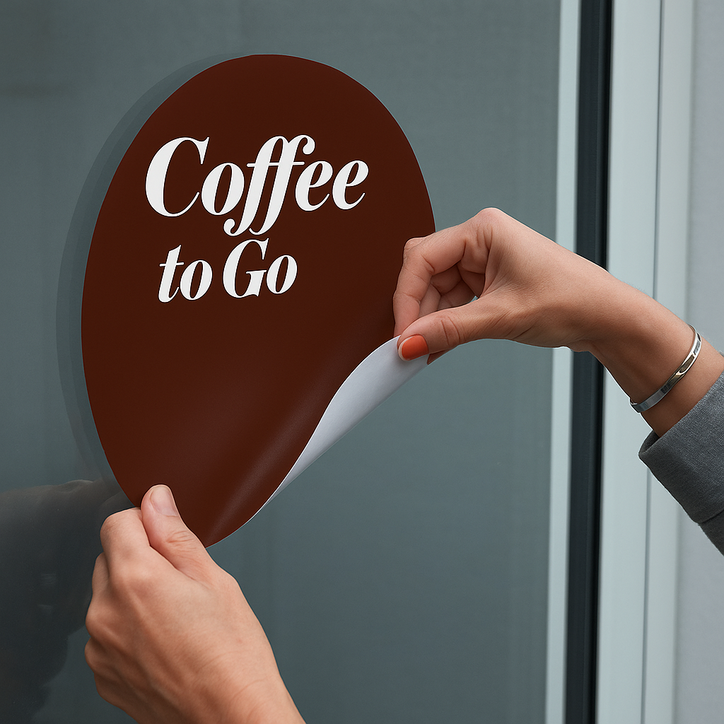 Dieser stilvolle „Coffee to Go“-Aufkleber in runder Form ist ideal für Schaufenster, Türen oder Theken in Cafés, Bäckereien oder Imbissen. Das klare Design in Kaffee-Braun zieht alle Blicke auf sich. Erhältlich in verschiedenen Größen – optional mit Ihrer individuellen Preisangabe!