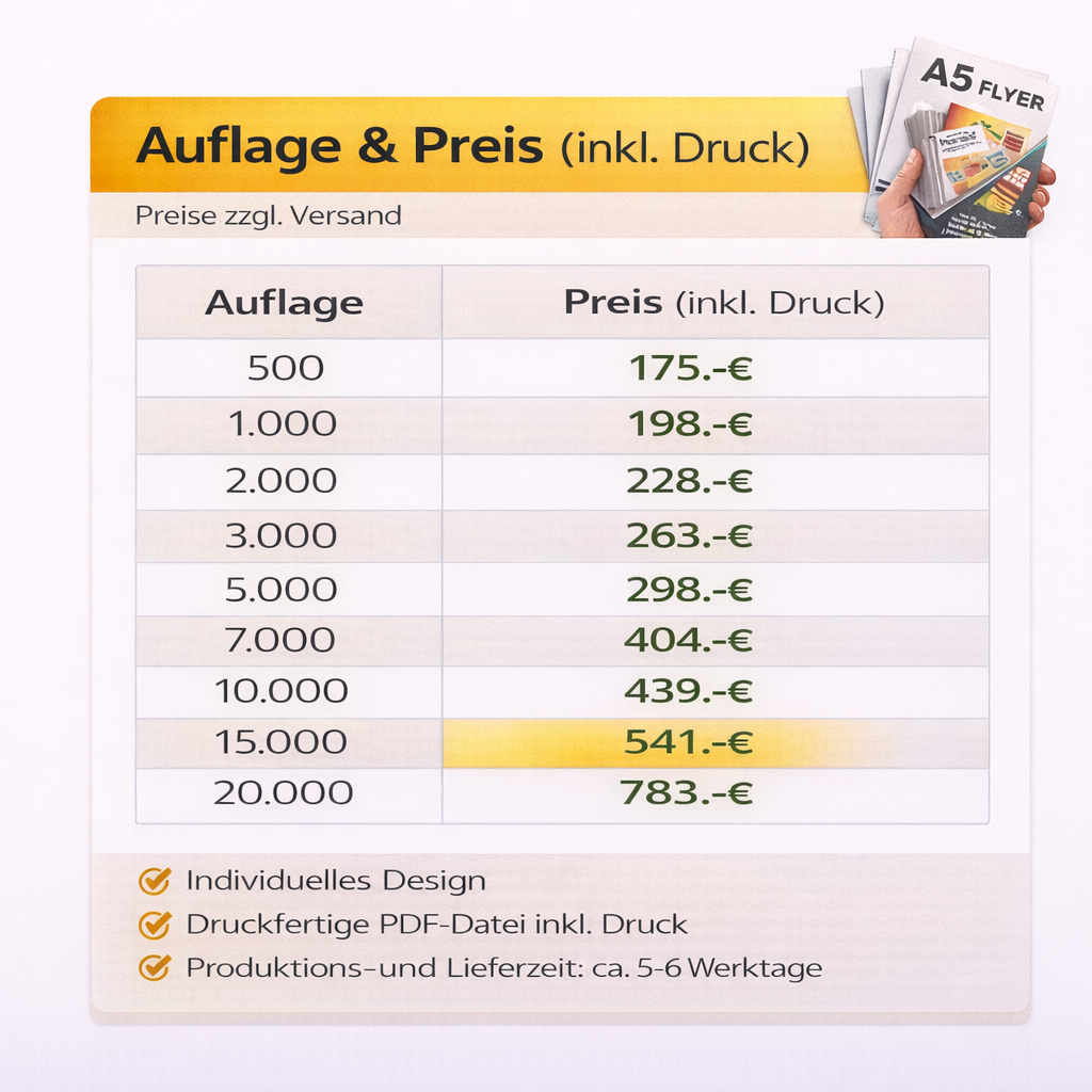 Flyer DIN A5 – Gestaltung inkl. druckfertiger Datei